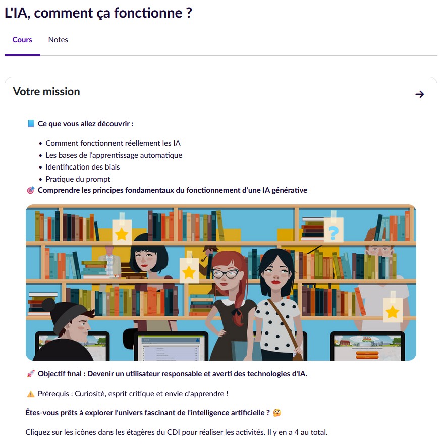 Cette deuxième séance se déroule en salle informatique en demi-classe et a pour objectif de découvrir comment fonctionnent réellement les IA et d’identifier les biais qui en découlent. Les élèves réalisent le parcours en autonomie pendant 40 minutes en salle informatique, puis un temps d’explicitation de 10 minutes permet de revenir sur certaines notions.