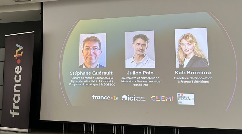 Mercredi 12 novembre a eu lieu au lycée Gustave Eiffel et au collège Aliénor d’Aquitaine, le Tour de France académique de l’Education aux médias et à l’information (EMI) et de la citoyenneté numérique. Il s’agit d’une journée de formation à destination d’enseignants du 1er et 2nd degré, organisé depuis octobre 2022, par France Télévisions , en partenariat avec le ministère de l’Education nationale et le CLEMI. Son objectif est de participer au plan de formation académique des enseignants et de sensibiliser les élèves aux fondamentaux de l’information et à la lutte contre la désinformation. Nous vous proposons dans cet article une synthèse des enjeux, outils et ressources présentés lors de cette journée de formation.