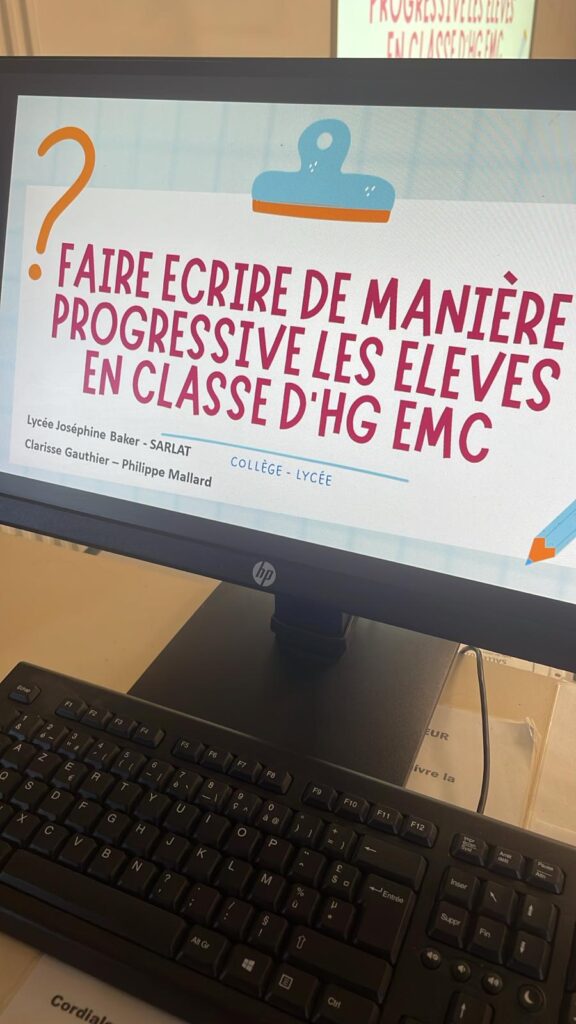 Mardi 3 mars, la formation sur l’écrit en Histoire-Géographie et EMC a été lancée au Lycée Josephine Baker de Sarlat (24). Répondant aux attentes nationales, tant dans les programmes que dans les référentiel de capacités, cette formation s’articule autour d’enjeux transdisciplinaires mais également spécifiques à nos disciplines. Par exemple, le raisonnement dans nos disciplines relève le plus souvent d’une argumentation scientifique fondée sur des connaissances alors qu’en français, les élèves peuvent davantage donner leur avis ou écrire de manière libre.