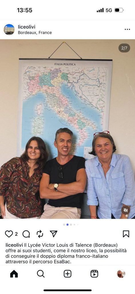 Qu’est-ce qu’un « job shadowing » ? Derrière cette appellation se cache tout simplement l’accueil d’un collègue étranger dans nos cours pour en saisir les particularités pédagogiques, en faire son miel et revenir au pays, enrichi de cette expérience très formatrice. Elle permet de prendre du recul et réfléchir aux meilleures pratiques et – pourquoi pas ? – harmoniser un jour à l’échelle européenne les outils, progressions et rythmes scolaires. Il s’agit en effet du fameux programme européen erasmus+ pour enseignants. Alice Landi, professeure d’Histoire en section esabac du Liceo Carlo Livi de Prato (Toscane) nous a donc rendu visite dans ce cadre et cet objectif durant une semaine. Elle a été accueillie par l’équipe esabac composée de Laura Maggini-Campan et Benjamin Fontaine. Le contact est merveilleusement passé et les échanges ont été particulièrement fructueux, assortis de la visite surprise durant une journée de notre collègue de Varèse (Lombardie) Antonella Visconti ! L’amitié franco-italienne a de nouveau trouvé un terrain fertile au Lycée Victor Louis ! Merci à tous pour avoir accueilli notre collègue dans leurs classes, à Pascale Boutet de porter le projet erasmus et à la Direction d’avoir facilité l’intégration de nos Italiennes ! »