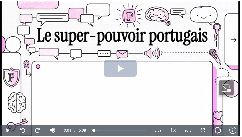 Et si parler portugais devenait un vrai atout pour ton avenir ? Dans cette capsule vidéo, tu verras comment l’apprentissage du portugais ouvre des portes, développe la confiance en soi et permet de découvrir d’autres cultures et façons de voir le monde. Langue internationale, langue de projets, langue de rencontres : le portugais est bien plus qu’une option, c’est un super-pouvoir à activer dès maintenant.