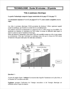 Thématique du sujet : Vélo à assistance électrique