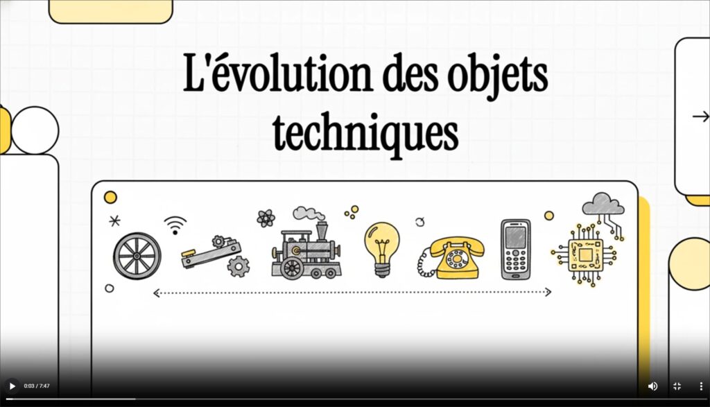 Cette vidéo présente de manière synthétique les notions importantes liées à l’évolution des objets techniques.