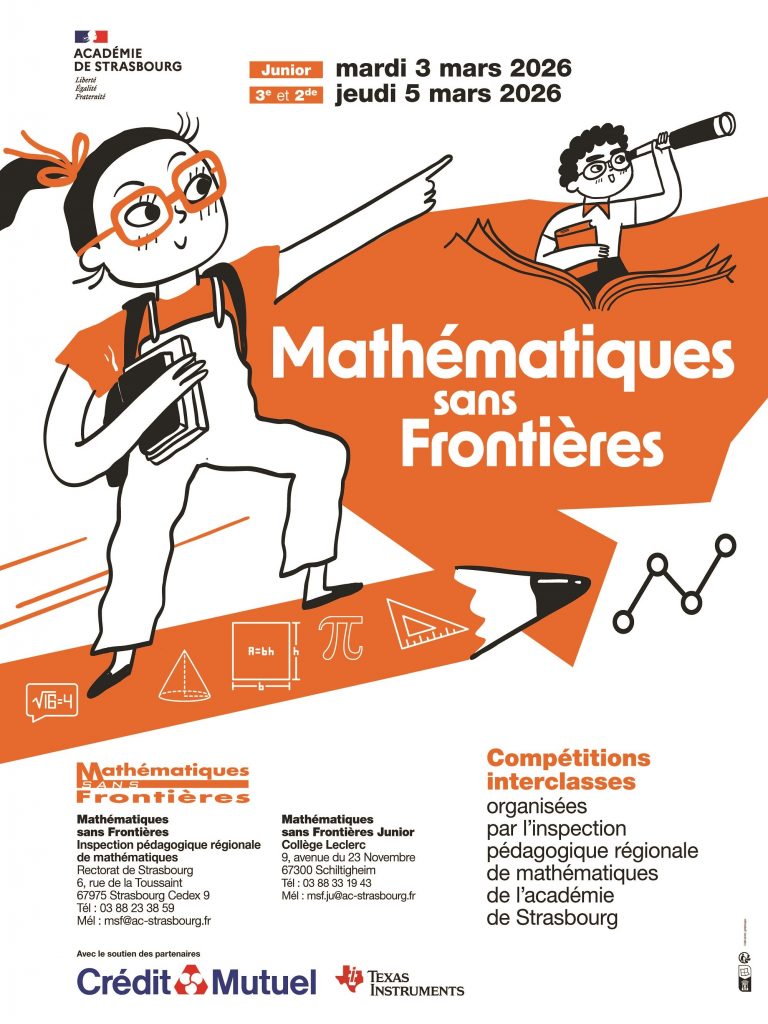 À l’occasion de la Semaine des mathématiques, les inscriptions aux concours Mathématiques sans Frontières et Mathématiques sans Frontières Junior sont ouvertes.
