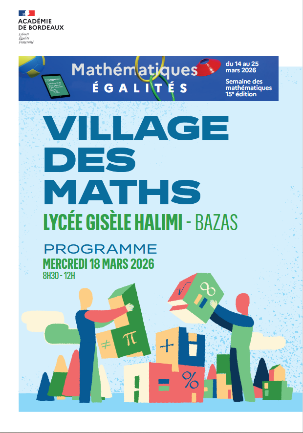 Dans le cadre de la Semaine des mathématiques 2026, le lycée Gisèle Halimi de Bazas accueillera le mercredi 18 mars un Village des maths, qui réunira élèves, enseignants et scientifiques autour d’une matinée dédiée à la découverte des mathématiques sous toutes leurs formes.