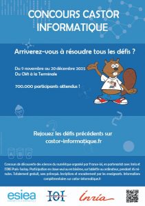 Le Concours Castor 2025 est désormais ouvert et se déroulera jusqu’au 20 décembre. Destiné à tous les niveaux scolaires, il propose des défis ludiques permettant de découvrir la pensée informatique et la logique algorithmique de manière accessible et stimulante. Cette année, les sujets ont été conçus pour être : Le concours se joue sur PC …