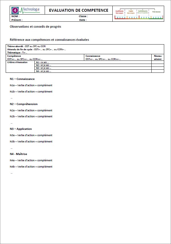 📥 la trame de fiche d’évaluation à utiliser comme modèle personnalisable, intégrant les références officielles aux compétences et connaissances du programme ;