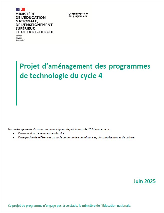 Télécharger le projet d’aménagement des programmes de Technologie au Cycle 4
