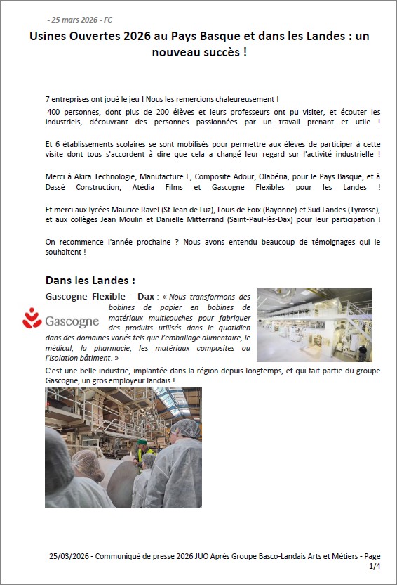 La journée Usines Ouvertes dans les Landes et le Pays Basque, une réussite encore cette année !