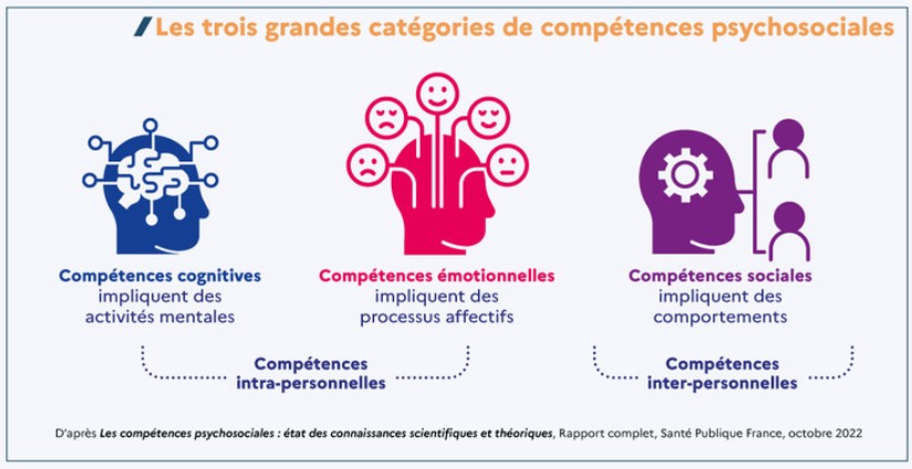 Aujourd’hui, selon Santé publique France, les CPS sont considérées comme un ensemble cohérent et interrelié de capacités cognitives, émotionnelles et sociales, mobilisant des connaissances, des processus internes et des comportements. Elles contribuent au développement de l’autonomie, du pouvoir d’agir, du bien-être psychique et des interactions constructives.