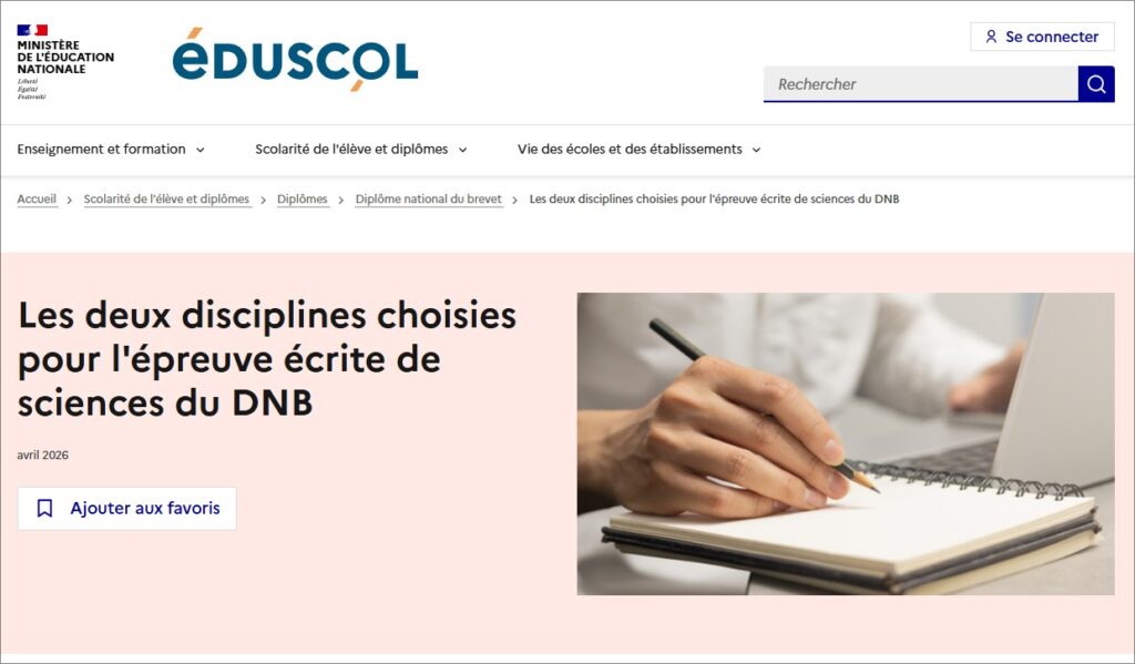Les deux disciplines choisies pour l’épreuve écrite de sciences du DNB session 2026